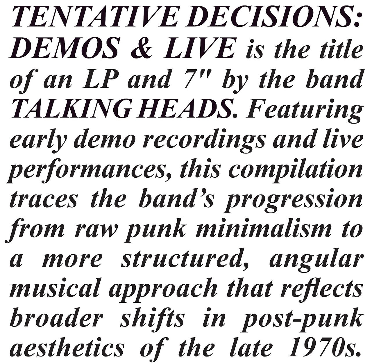 Talking Heads - Tentative Decisions 1974 - 1976 [RSD Black Friday 2025] LP+7"